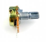 De WH148 is een standaard 10K Ohm potmeter met een draaibereik van circa 270 graden. Je kunt deze potmeter in een behuizing bouwen, en ook onze plastic knoppen kunnen op de schacht worden geklikt.