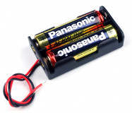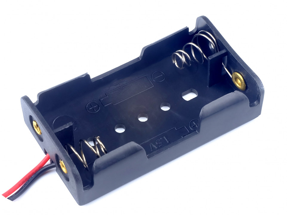 Plastic batterijhouder voor 2 AA-batterijen met 2 losse aansluitdraden. Aan de bovenkant zitten op iedere zijde 2 klipjes zodat de batterijen erg strak in de batterijhouder blijven zit, en dus niet zomaar eruit kunnen vallen.