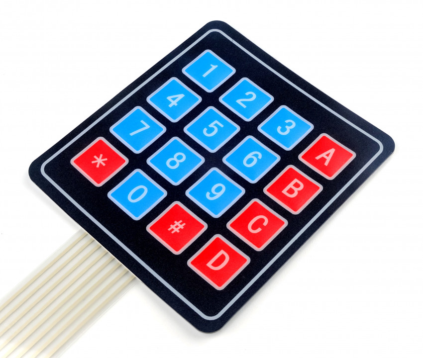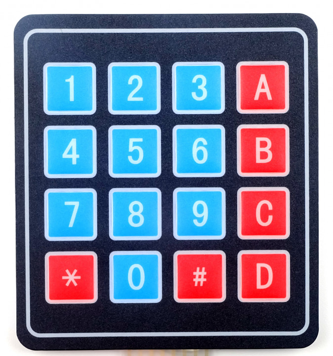 Met dit membraam toetsenbord kun je 16 knoppen toevoegen aan je Arduino project. De interne contacten van het toetsenbord zijn in aan matrix opgesteld, waarbij er 4 pinnen zijn voor het uitlezen van de rijen en 4 pinnen voor de kolommen.