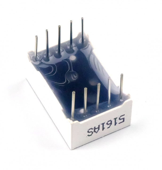 Klein 7 segment display met 1 cijfer en 1 punt. De kleur van de LEDs is rood en zijn als common cathode (cc) geschakeld.