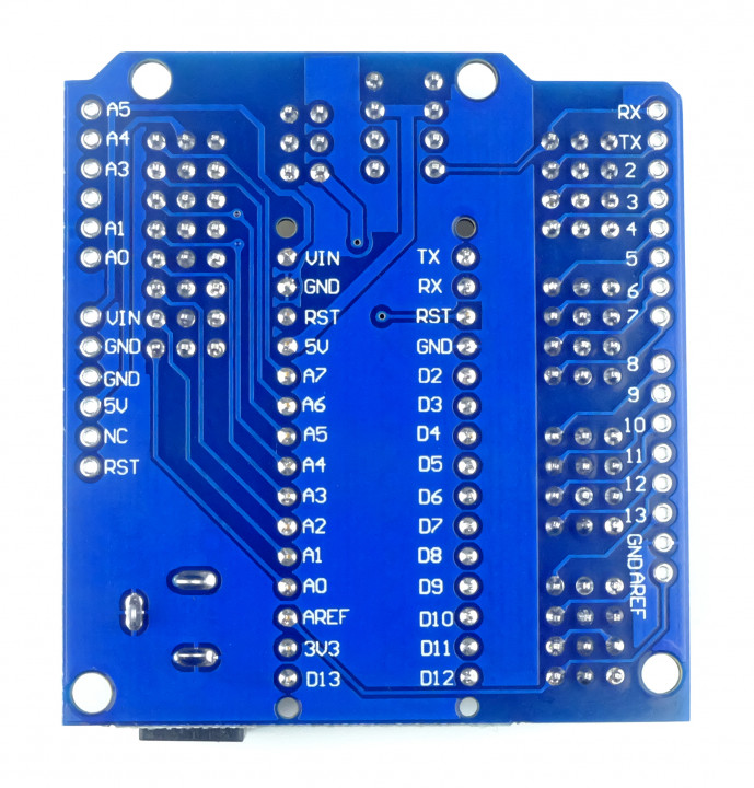 - Arduino Nano kun je direct in het shield steken