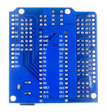 Verder heeft dit shield de vorm en pinout van een Arduino Uno, dus je kunt ook shields van een Arduino Uno hierop aansluiten.