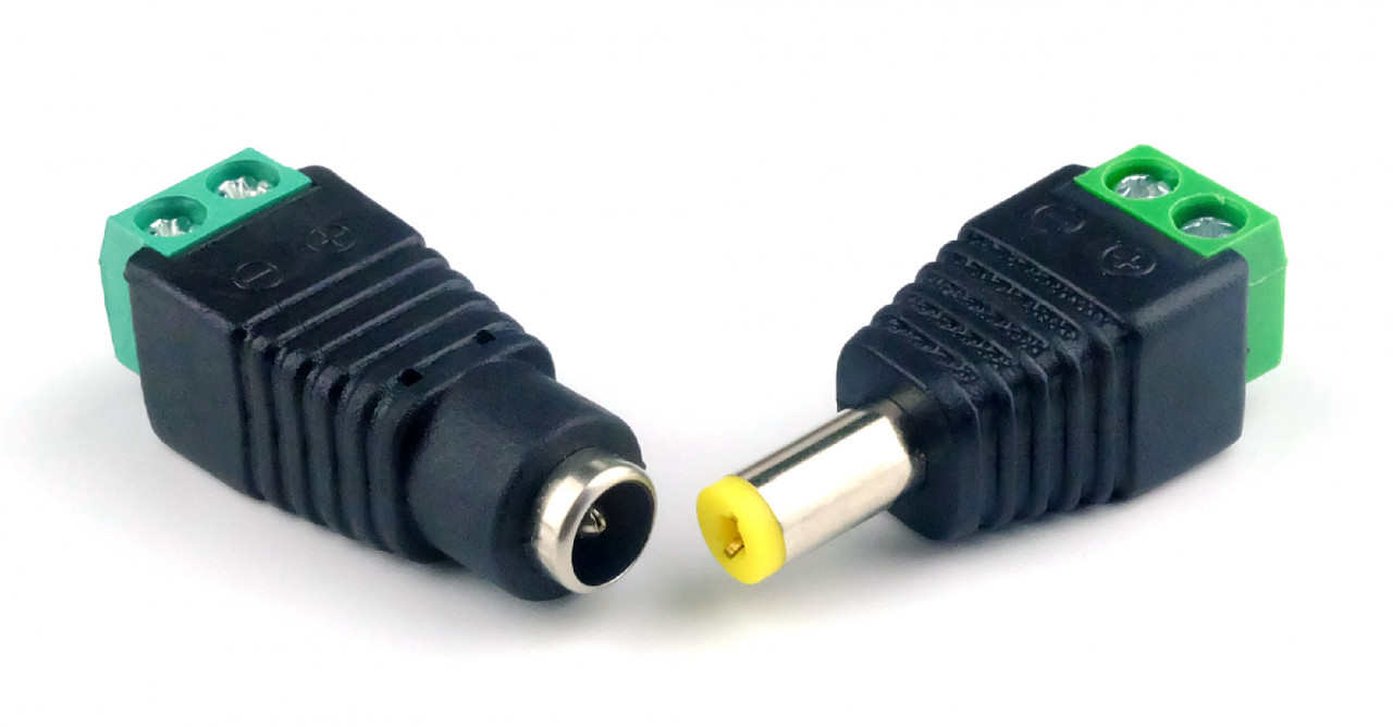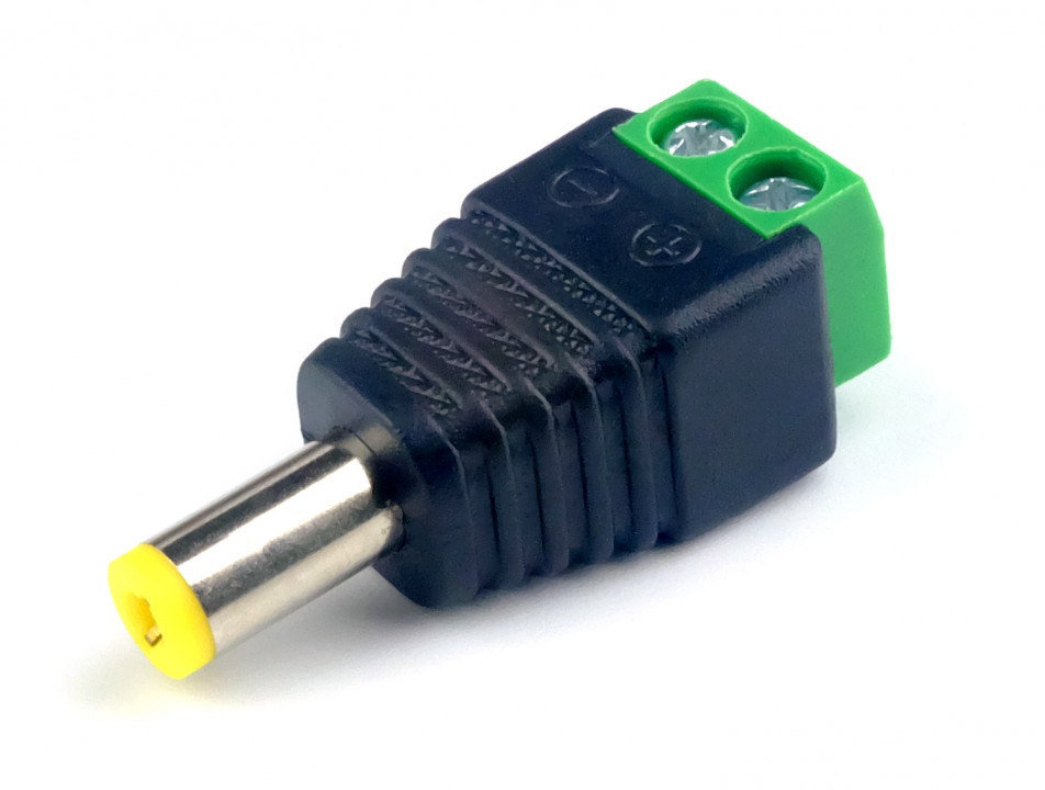 Handige DC Jack 5.5x2.1mm male adapter waarop je zelf draden kunt aansluiten via een kroonsteentje.