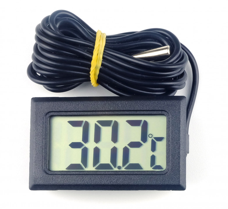 Met deze handige temperatuursensor lees je direct de temperatuur af van een display. De afleesbare resolutie is 0,10 graden Celsius en het bereik is van -30 tot 110 graden Celsius.
