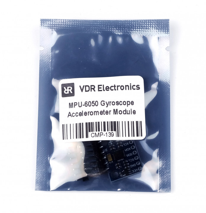 De MPU6050 is een 6-assige Motion Tracking Device. Deze chip bevat een 3-assige versnellingsmeter, een 3-assige gyroscoop, een Digital Motion Processor en om het af te maken nog een temperatuursensor. Met de I2C bus kun je communiceren met deze module.