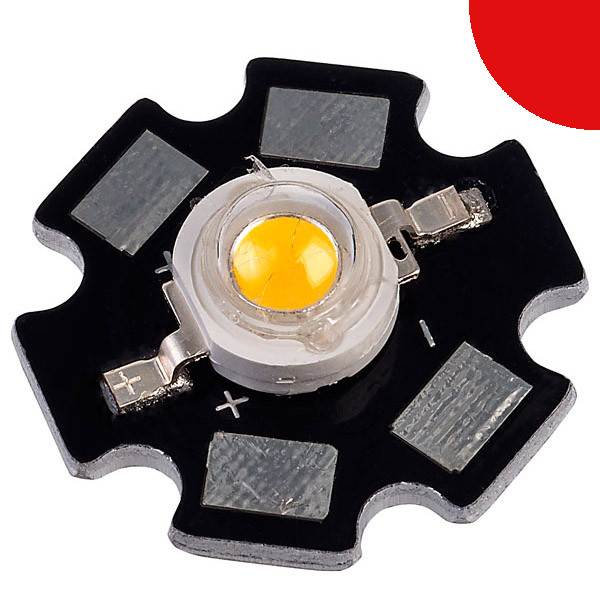 Rode Power LED van 1 Watt gesoldeerd op een ster.