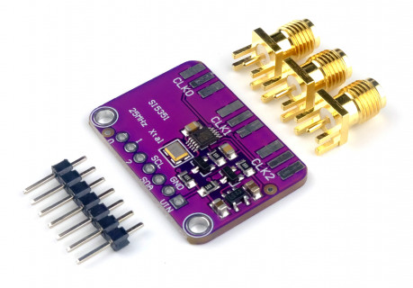 Deze clock generator kun je aansturen via de I2C bus om op drie kanalen een gewenste uitgangsfrequentie te programmeren. Elk kanaal kan onafhankelijk en tegelijkertijd een andere frequentie uitsturen. Het voltage op de uitgang is 3Vpp.